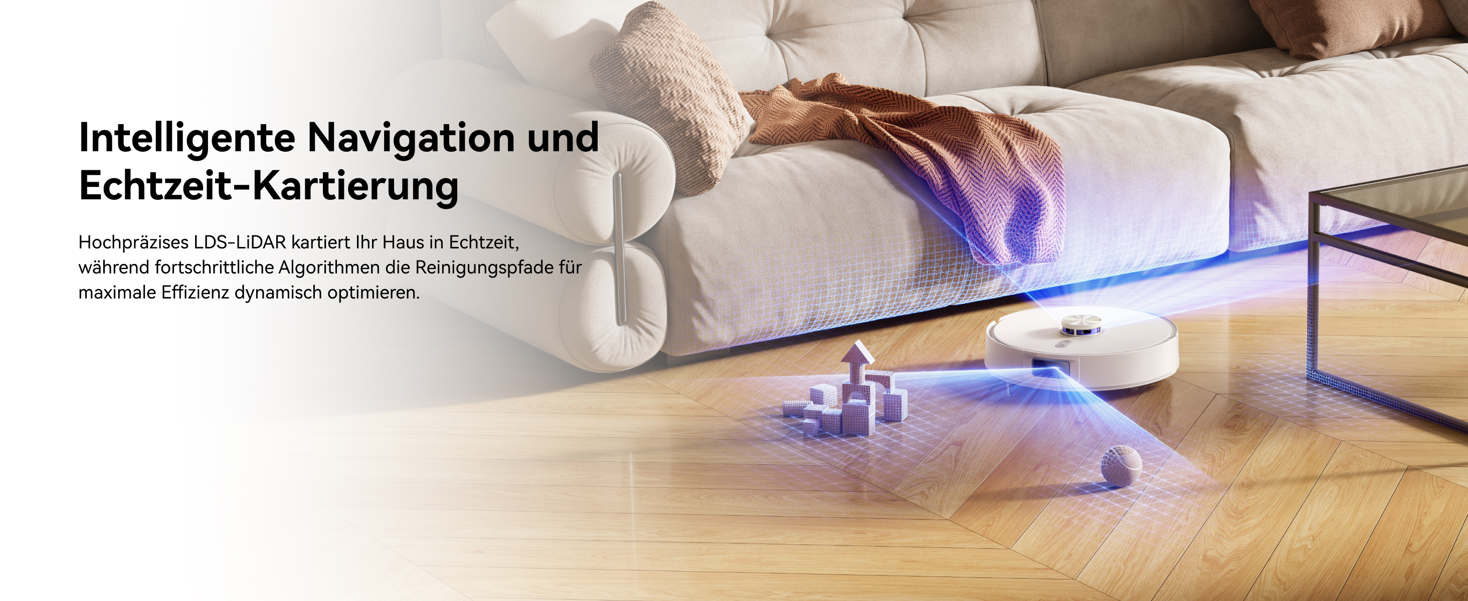Was den Narwal Freo S. so einzigartig macht, sind seine innovativen Technologien und durchdachten Funktionen: Das Staubsaug-Dock mit einer Kapazität für bis zu 180 Tage und einem großzügigen 3,5-Liter-Staubbeutel garantiert langanhaltende Sauberkeit ohne häufiges Entleeren. Die präzise LiDAR-Navigation mit LDS-Lasern sowie 3D-Mapping ermöglicht eine millimetergenaue Hinderniserkennung und effiziente Routenplanung. Mit einem kraftvollen Reinigungsdruck von 8 N und einem abnehmbaren 300-ml-Wassertank, dessen Wasserstrahl in drei Stufen regulierbar ist, meistert der Freo S. sowohl das Saugen als auch das Wischen auf Teppichen und glatten Böden – selbst Tierhaare stellen kein Problem dar.